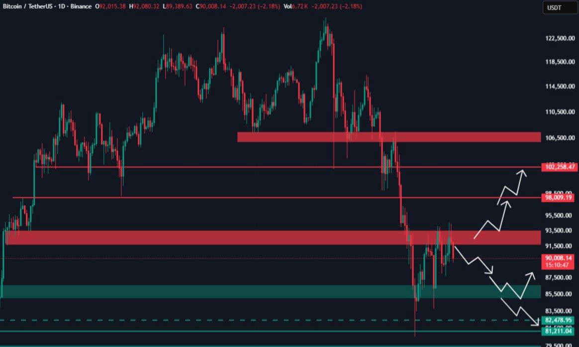 注視されている主要なサポートレベルには$88,000-$89,000のゾーンがあります。ビットコインがこのエリアを維持できれば、買い手は抵抗線に向けてもう一度押し上げを試みる可能性があります。これを破ると$85,000の地域を露呈し、より深い下落を引き起こす可能性があります。マクロ要因として、FRBのコメントや収益報告、流動性シグナルが短期的な方向性にとって重要です。