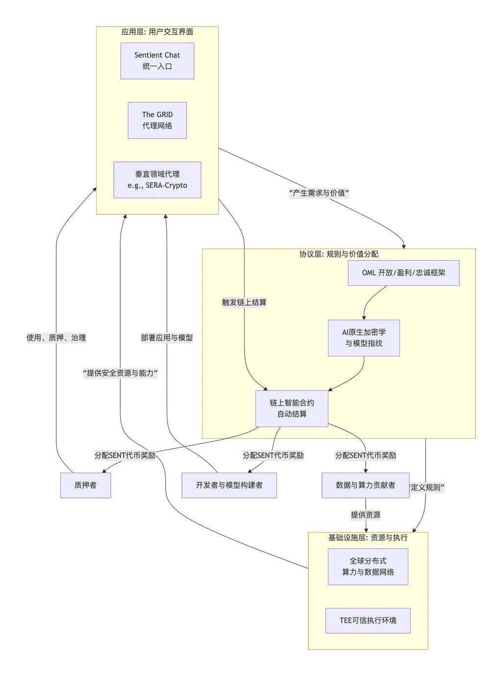 In summary, the brilliance of Sentient’s ecosystem structure lies in its “flywheel effect”: the application layer attracts users and generates demand and value; the infrastructure layer reliably executes tasks; the protocol layer ensures that the generated value is fairly redistributed to contributors and builders, thereby incentivizing more participants to join and continuously improve network scale and quality.