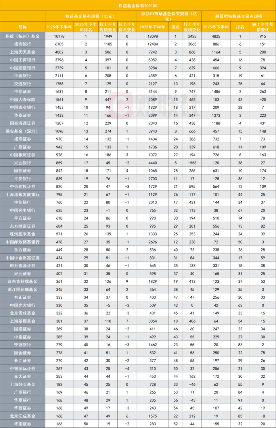Top 100 Institutions Landscape Reshaped: Three-Way Equity Surges, Securities Companies Non-Monetary Growth Stands Out, Huatai Exits TOP10