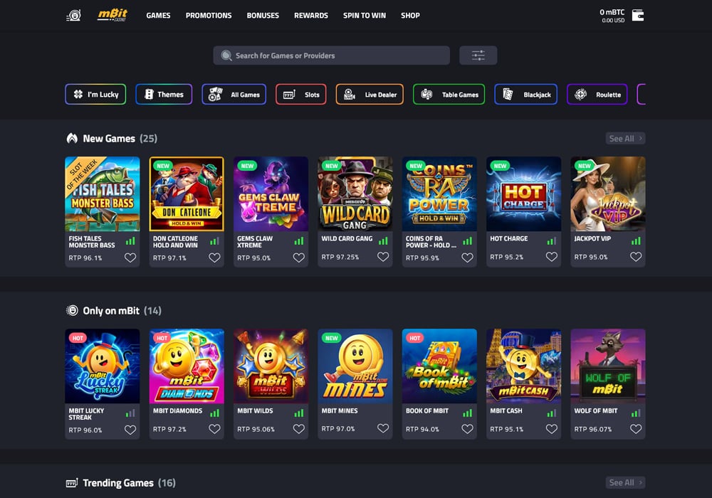 Diverse game selection featuring quality providers and original titles