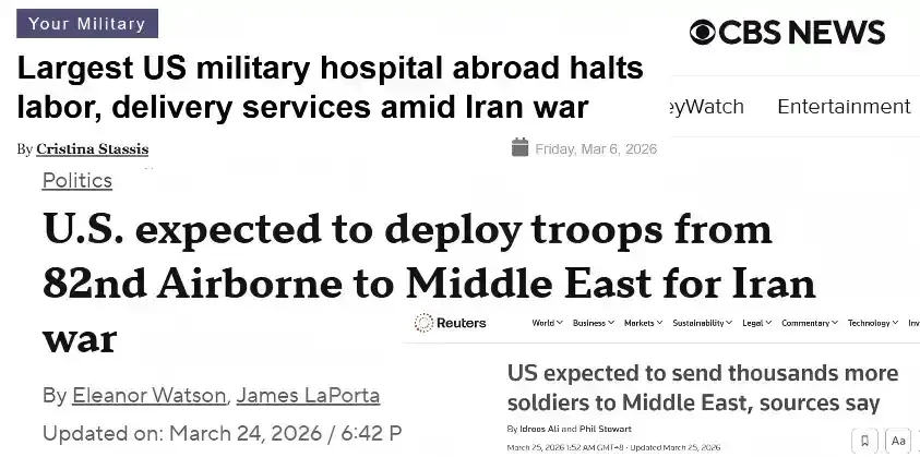 The U.S. 82nd Airborne Division canceled its rotation of the “Joint Readiness Training Center,” the U.S. 82nd Combat Aviation Brigade transported aircraft by air instead of normal sealift to increase airlift capacity, U.S. military bases in the Middle East increased their blood bank reserves by 500%, and the largest overseas U.S. Department of Defense hospital in the world—the Landesstüür Medical Center in Germany—paused some civilian services.