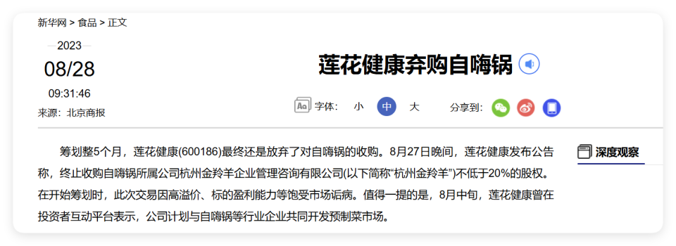 In 2023, the self-heating pot originally wanted to find a “white knight” to fool Lianhua Health, the one selling MSG, to have it pay a high premium to acquire itself.