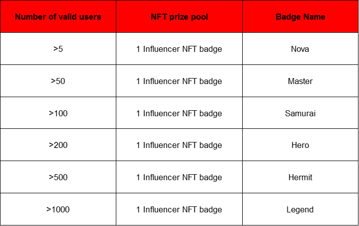 2.Sign up and share your recommended links, get up to 10 Influencer NFT badge