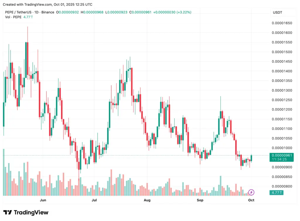 PEPE tem tido dificuldades com o momentum altista desde setembro.