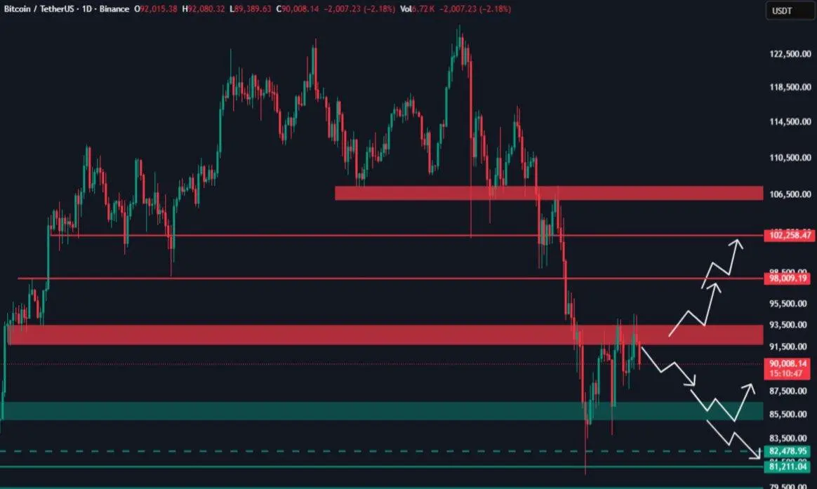 Níveis de suporte importantes sob observação incluem a zona de $88.000-$89.000. Se o Bitcoin mantiver essa área, os compradores podem tentar outro avanço em direção à resistência. Uma quebra pode expor a região de $85.000 e desencadear uma queda mais profunda. Fatores macro, incluindo comentários do Fed, relatórios de lucros e sinais de liquidez, continuam críticos para a direção de curto prazo.
