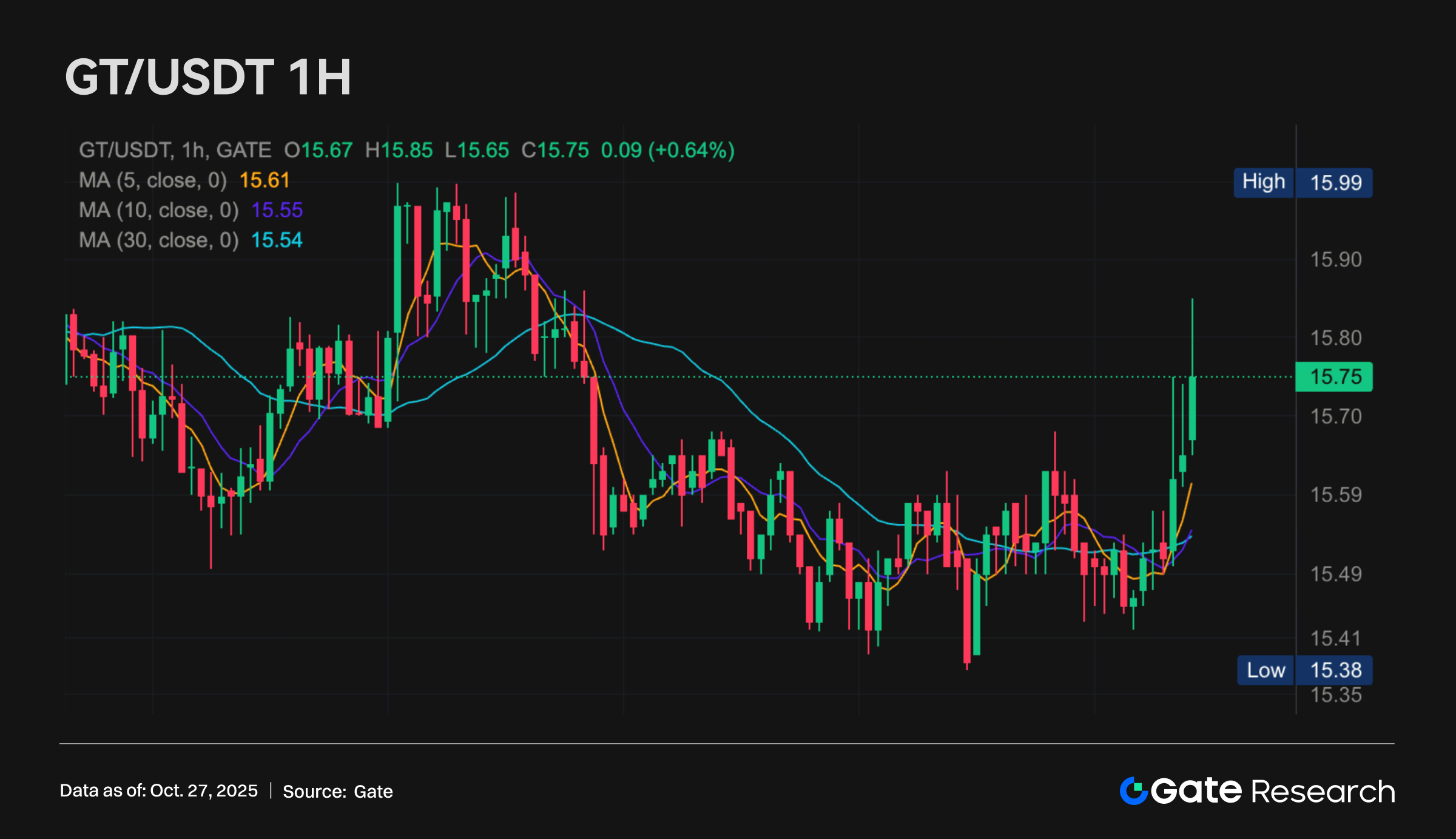 GT( 1.22% 丨 текущая цена 15.75 USDT)