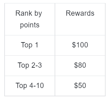This activity is for traders on the same level. (for example, primary trader A vs primary trader B, intermedia trader A vs intermedia trader B) The result will be calculated per week by taking the average of the total amount of each trader, and we will count the newly recruited copiers of traders. Participants can get the corresponding points once each task is completed, and the Top 3 traders in weekly points will have the opportunity to be on the recommended list of the copy trading homepage to get more exposure. Also, they can get additional token/points rewards as follows: (The Top 50 copiers in copying amount can get souvenirs!)