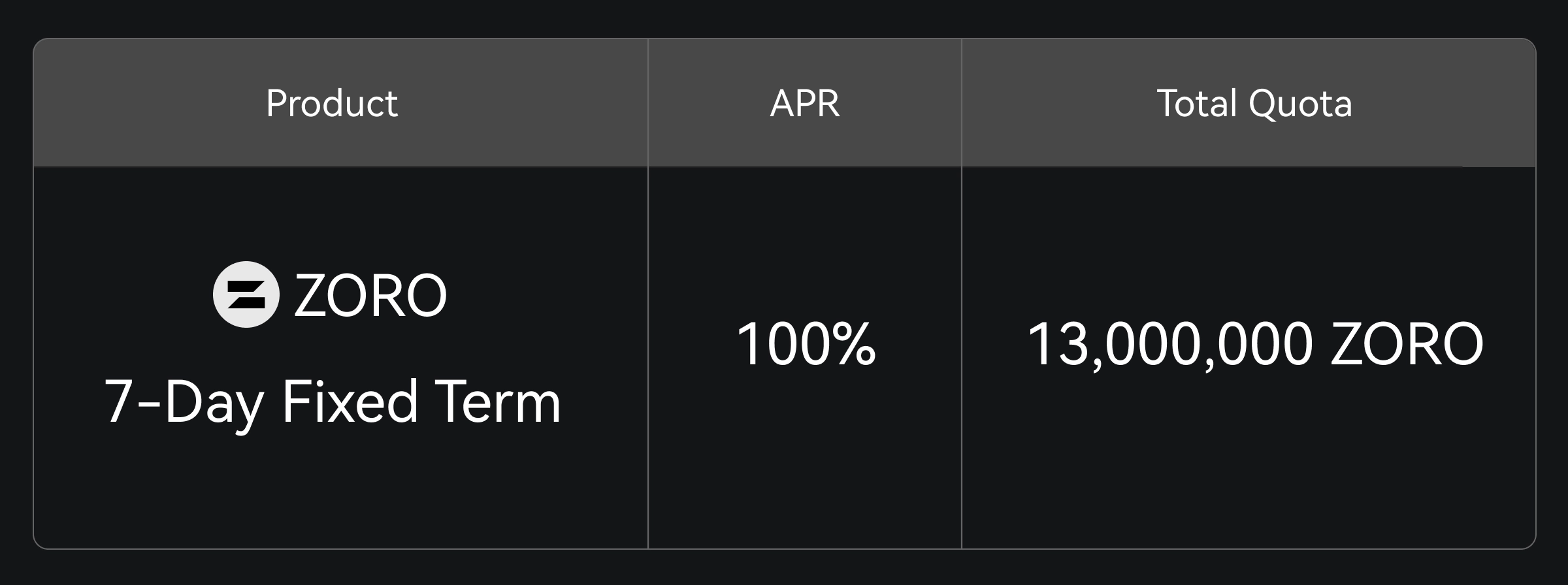 Gate Simple Earn has launched the ZORO 7-day fixed-term investment, offering up to 100% APR. With a limited allocation of 13 million ZORO available on a first-come, first-served basis, don’t miss out.