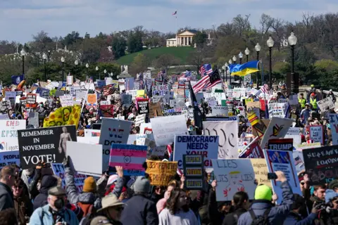 組織者表示,他們在抗議美國總統唐納德·特朗普所施加的政策,包括對伊朗的戰爭、聯邦移民執法以及不斷上升的生活成本。