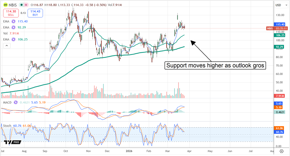 Nebious Group NASDAQ: NBIS 面臨逆風,其中包括不斷擴大的債務負擔,但其不斷成長的在手訂單(backlog),由來自與 Meta 與 Microsoft 的交易所推動,抵消了這些影響。最可能的情境是:這項與 NVIDIA 緊密相關的資料中心業務,持續落實其策略並承接其在手訂單。目前來看,在手訂單近 500 億美元,且預期隨著新專案上線,後續財年中的收入認列將大幅加速。