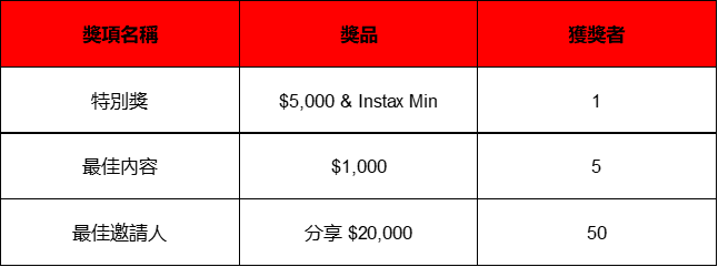 獎池有限,我們將根據社交媒體影響力(粉絲數、點贊數、評論數、轉帖數)和個人邀請用戶數量進行綜合排名。先到先得!