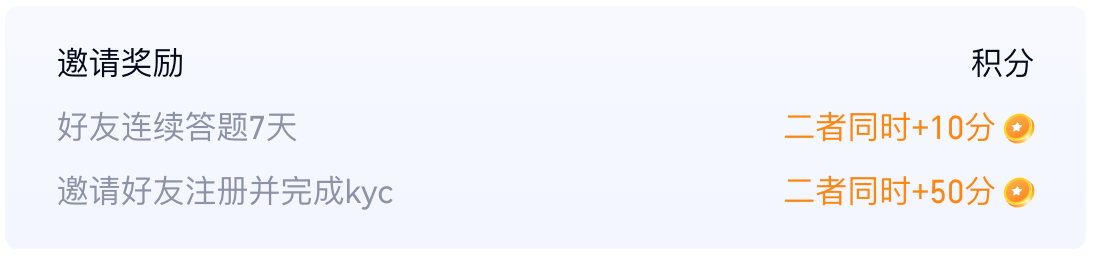 2.邀请新用户注册Gate并完成KYC,双方积分+50(需使用活动页面注册链接);