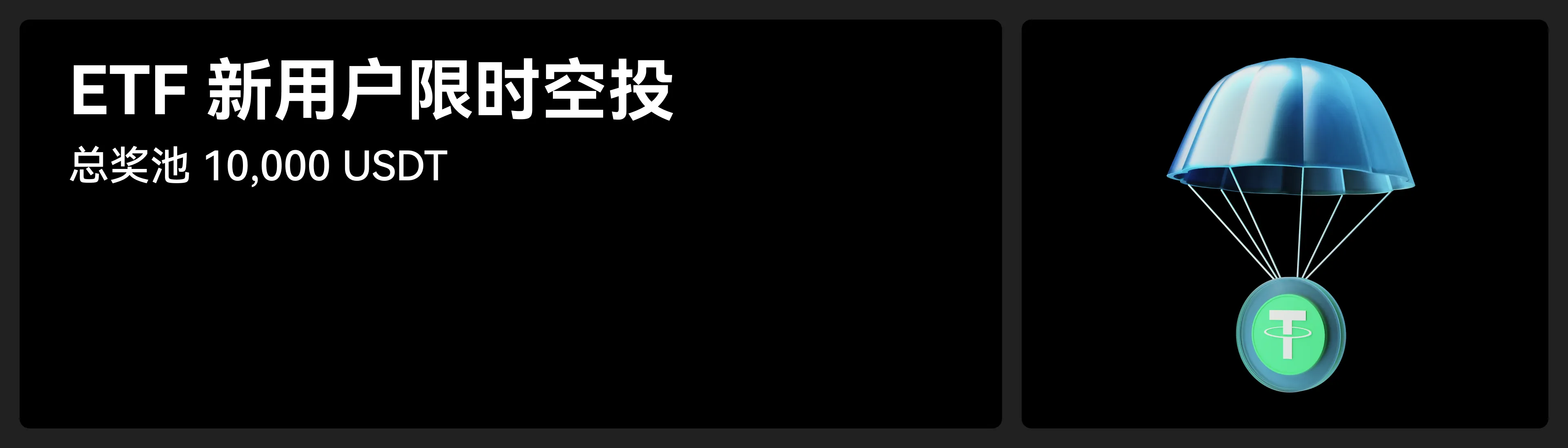 “ETF 新用户限时空投活动”,总奖池 **10,000 USDT**。名额有限,先到先得。