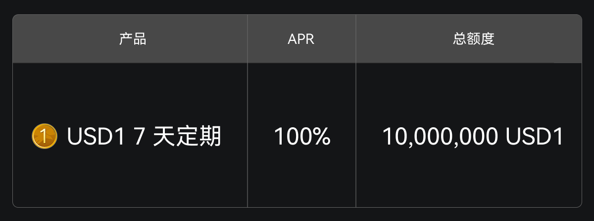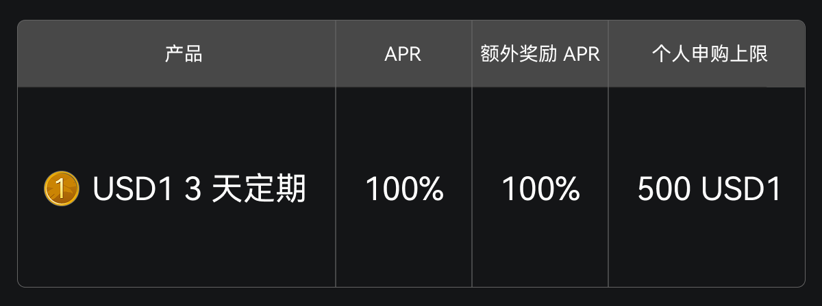福利二:USD1 定期理财享 10% 年化收益
