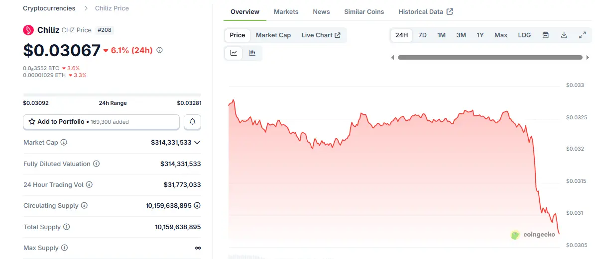 CHZ代币市场表现